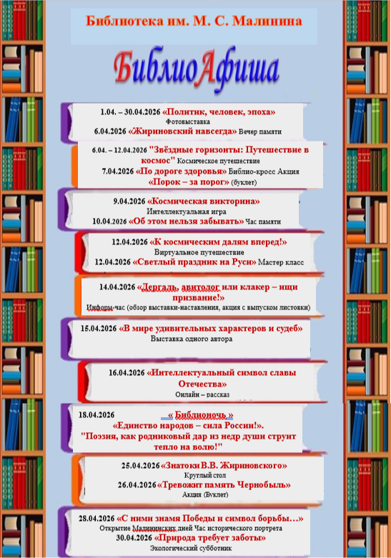 План мероприятий Антроповской центральной библиотеки им.М.С.Малинина