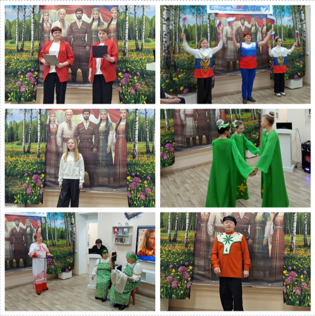 В течение мероприятия звучали стихи и песни о любви к Родине, о дружбе народов, о единстве многонационального народа в периоды тяжелых испытаний для России - во время ВОВ и мужества в ходе СВО.