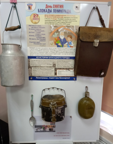 Рядом библиотекари разместили инсталляцию с вещами, которые помогали выживать в суровом блокадном быту. Особое место занимают сборники стихов Ольги Берггольц, поэтесса осталась в истории под ликом «блокадной мадонны» и вдохновительницы жителей города-воина.