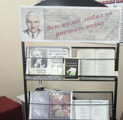 К 110-летию со дня рождения писателя центральная библиотека имени М.С. Малинина напомнила о них читателям Антроповского района. Поэт, прозаик, драматург и прежде всего легендарный военный корреспондент - его творчество стало летописью целой эпохи.