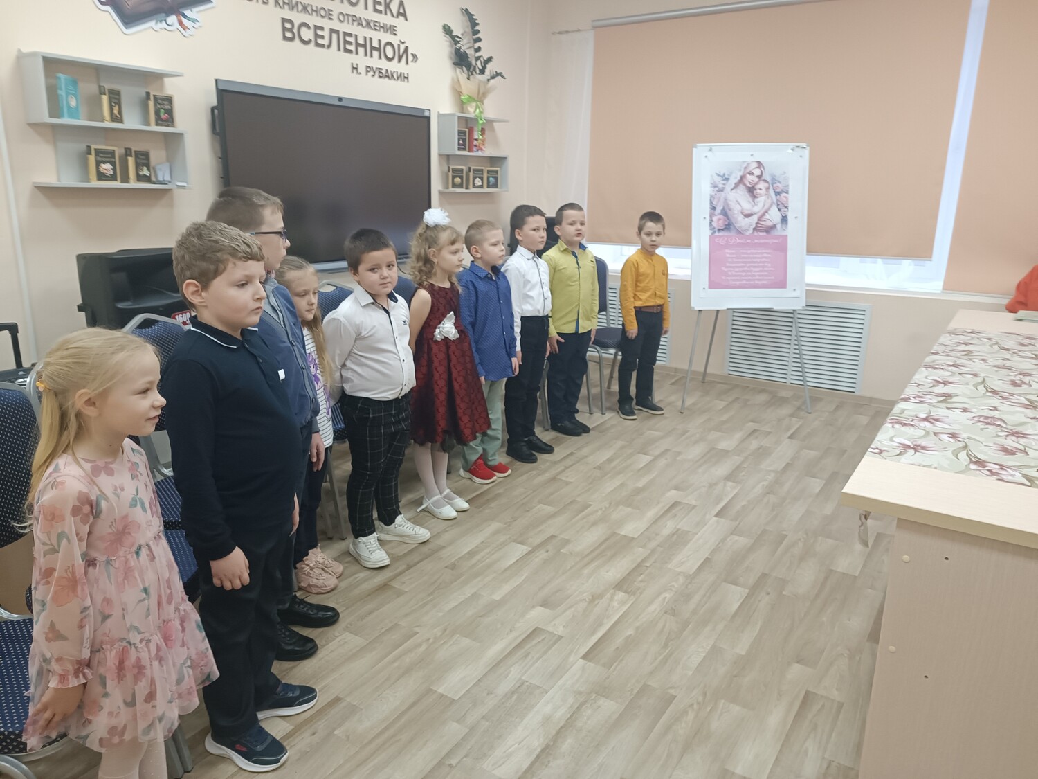 В детском отделе Антроповской центральной библиотеки им. М.С. Малинина в рамках этого светлого праздника состоялся творческий час «Мир начинается с мамы». Учащиеся 1 «А» класса Антроповской средней школы (классный руководитель Светлана Николаевна Карпова) с радостью приняли участие в мероприятии.