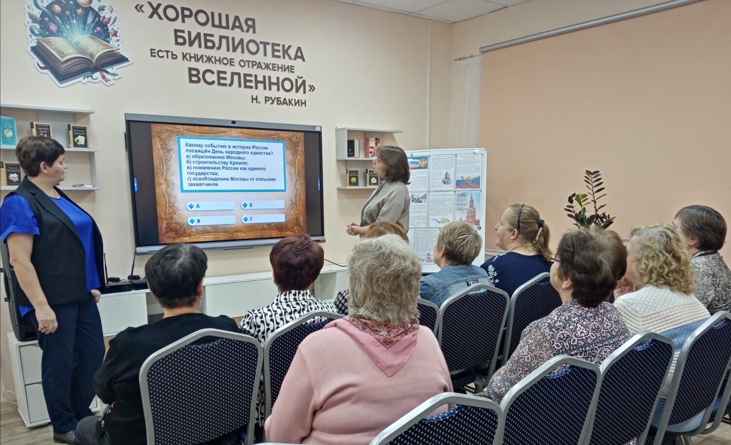 Дальше гости разогревались интерактивной игрой, благо у «библиотеки нового поколения» есть теперь технические возможности устроить виртуальную викторину. Тема как раз соответствовала патриотичному настроению праздника – «Не забудет наш народ доблесть русских воевод». Знают, ох, знают наши гости российскую историю и её победителей-героев!