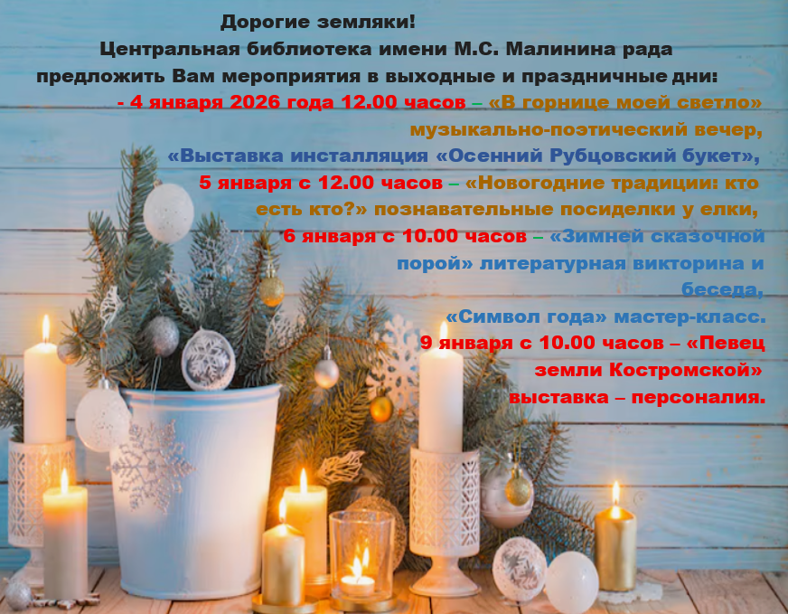 Для этого библиотекари подготовили целую россыпь самых разнообразных мероприятий. Выбрать лучшее для себя времяпровождение поможет наша новогодняя афиша.