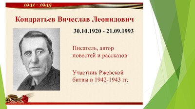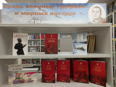 В центральной библиотеке имени М.С. Малинина 105-летие со дня рождения писателя-фронтовика Вячеслава Кондратьева отметили книжной выставкой «Средь военных трофеев и мирных костров».