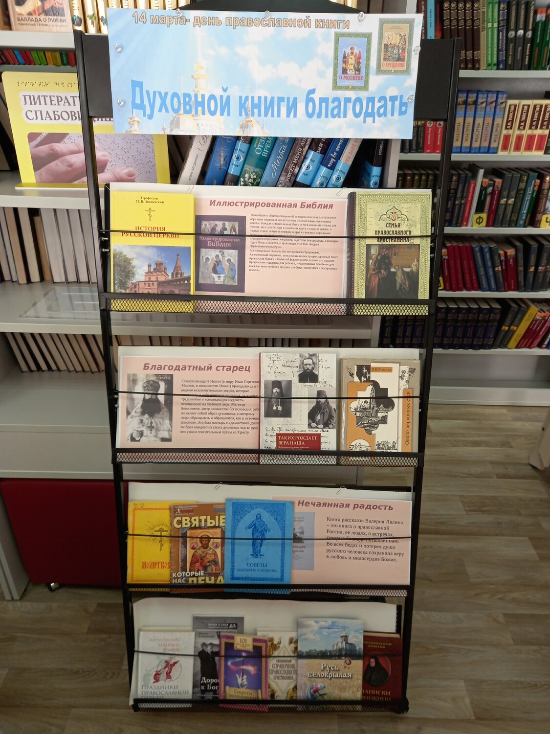 Библиотеки Антроповского района делятся через выставки и экспозиции главной идеей этого праздника - показать богатство православной литературы, имеющейся в фондах. В подборке Центральной библиотеки имени М.С. Малинина "Духовной книги благодать" не только священные тексты вроде Библии, сочинения отцов церкви и богословские трактаты. К православной книге относятся и произведения художественной литературы, которые наполнены добротой, помогают понять смысл жизни, учат великодушию и состраданию.