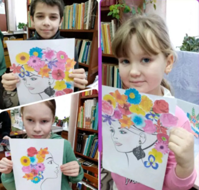 Творческие идеи претворились в десятки рукотворных, несущих мощные заряды любви поделок и сувениров: открытки, цветочные корзинки, яркие напоминалки расписания уроков. С особым старанием юные творцы под руководством креативного библиотекаря Татьяны Дмитриевой трудились над портретами любимых мам, запечатленных в образе цветущей женщины – весны.
